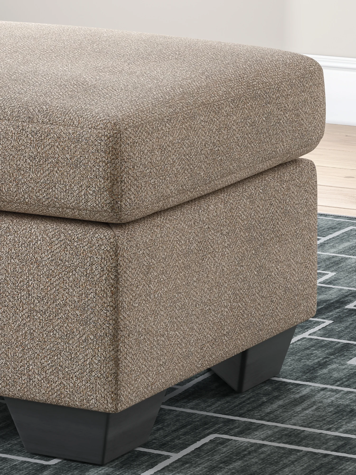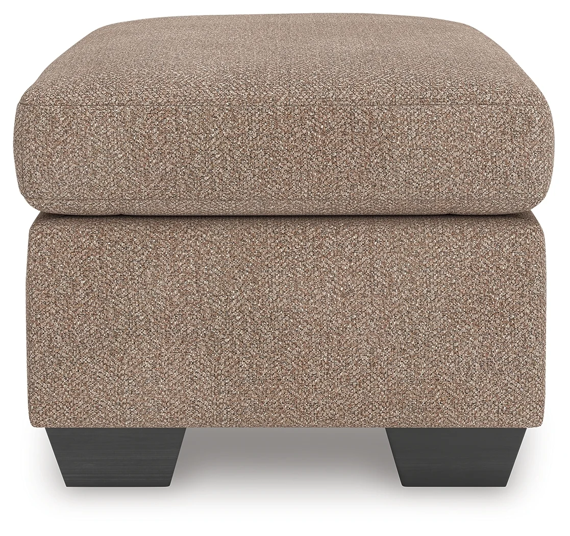 moreTransitional and right on trend. This ottoman's upholstery is a delightful change from the ordinary, with hints of soft brown giving the gray hue added depth. Whether you're hosting friends and family or relaxing solo, this ottoman invites homey, comfortable character into your space.